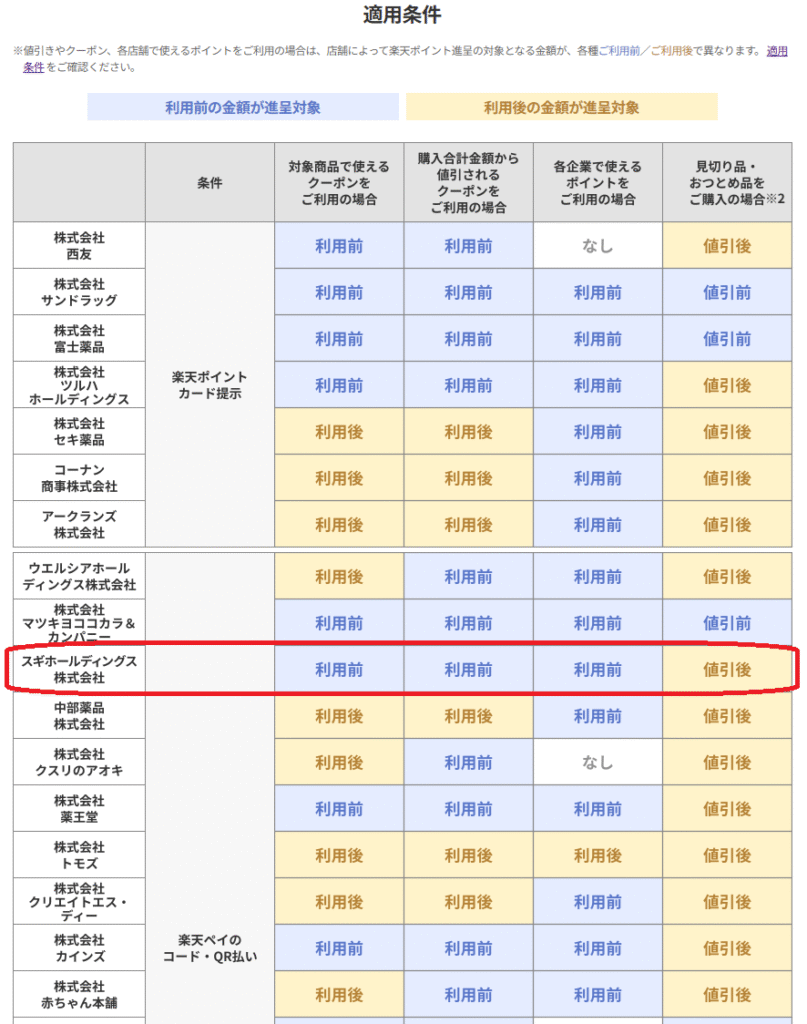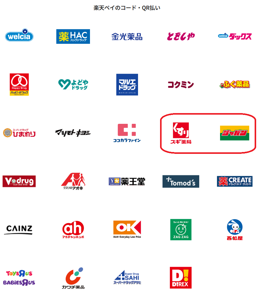 大手ドラッグストアなどが対象店舗となっており、スギ薬局も含まれています。